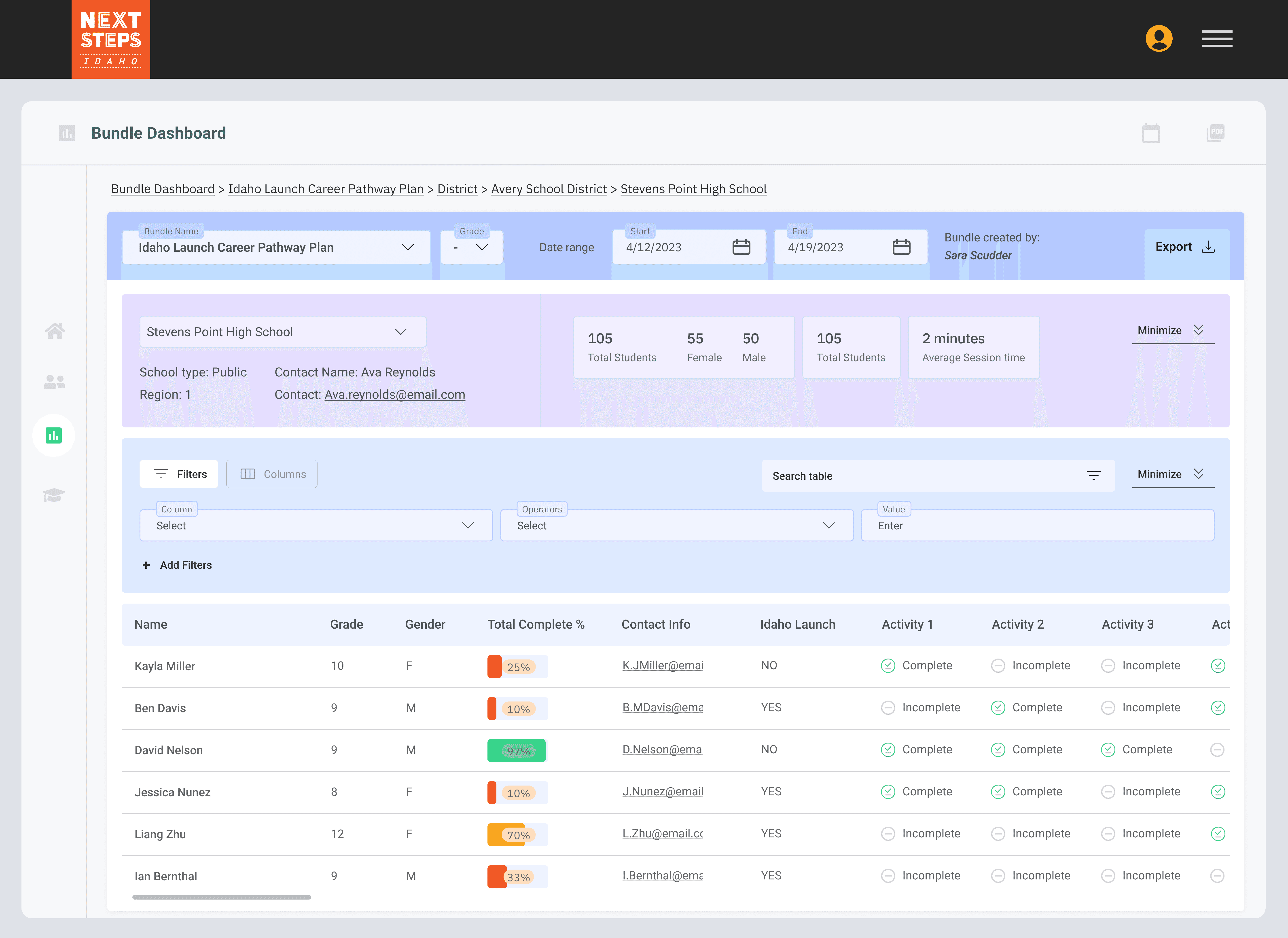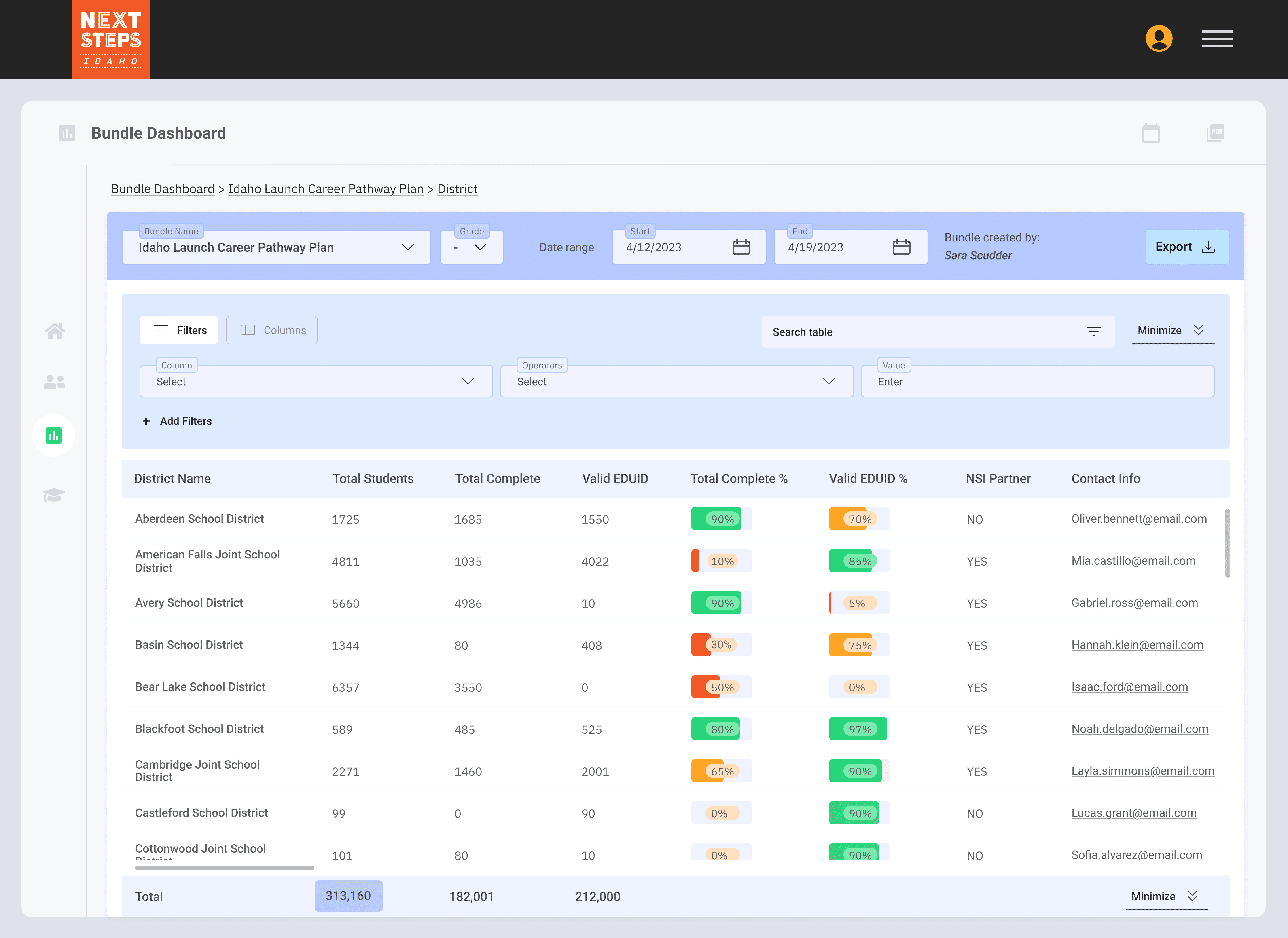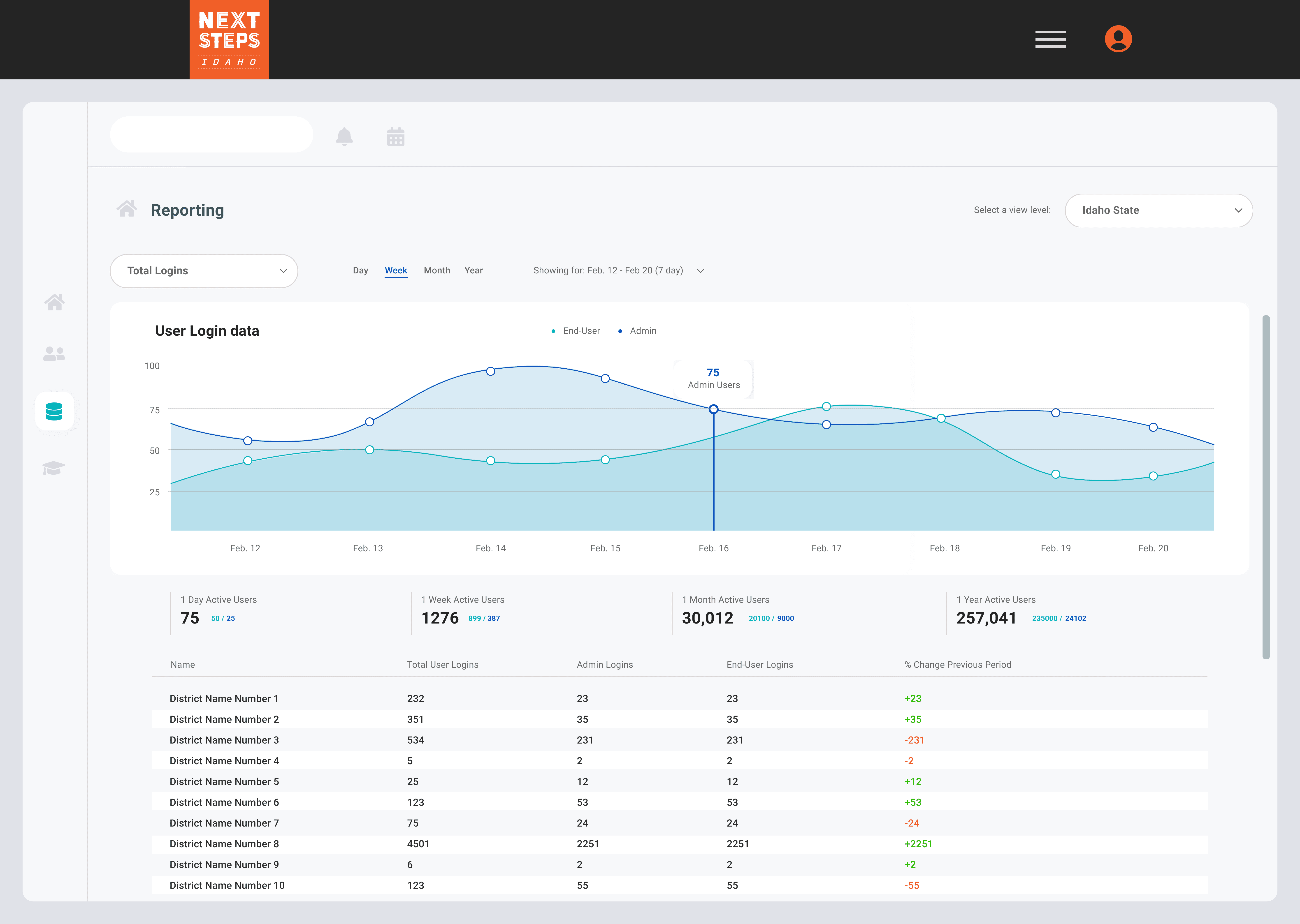 After launch, Next Steps Idaho saw a 30% drop in reporting-related support tickets. Users noted higher satisfaction because of faster access to information through clearly defined pages, navigation, and filters.