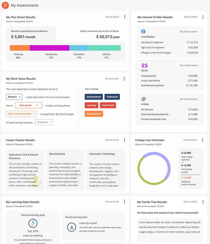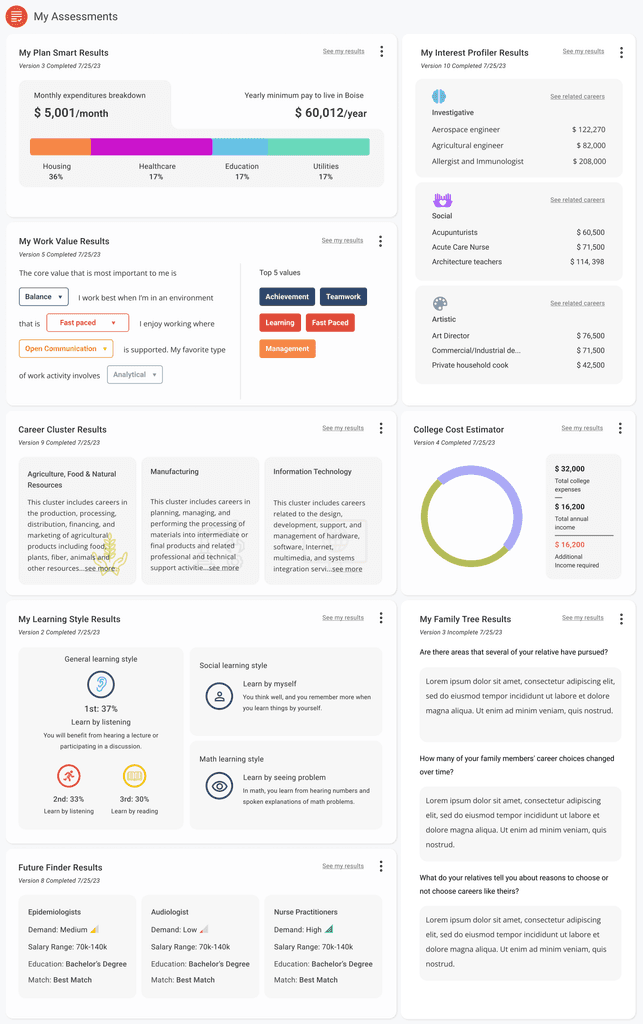 Despite technical constraints and tight timelines, I delivered a dynamic MVP that provided students with an intuitive experience for making key decisions about their college and career paths, all while laying the groundwork for a more flexible design framework in future iterations.