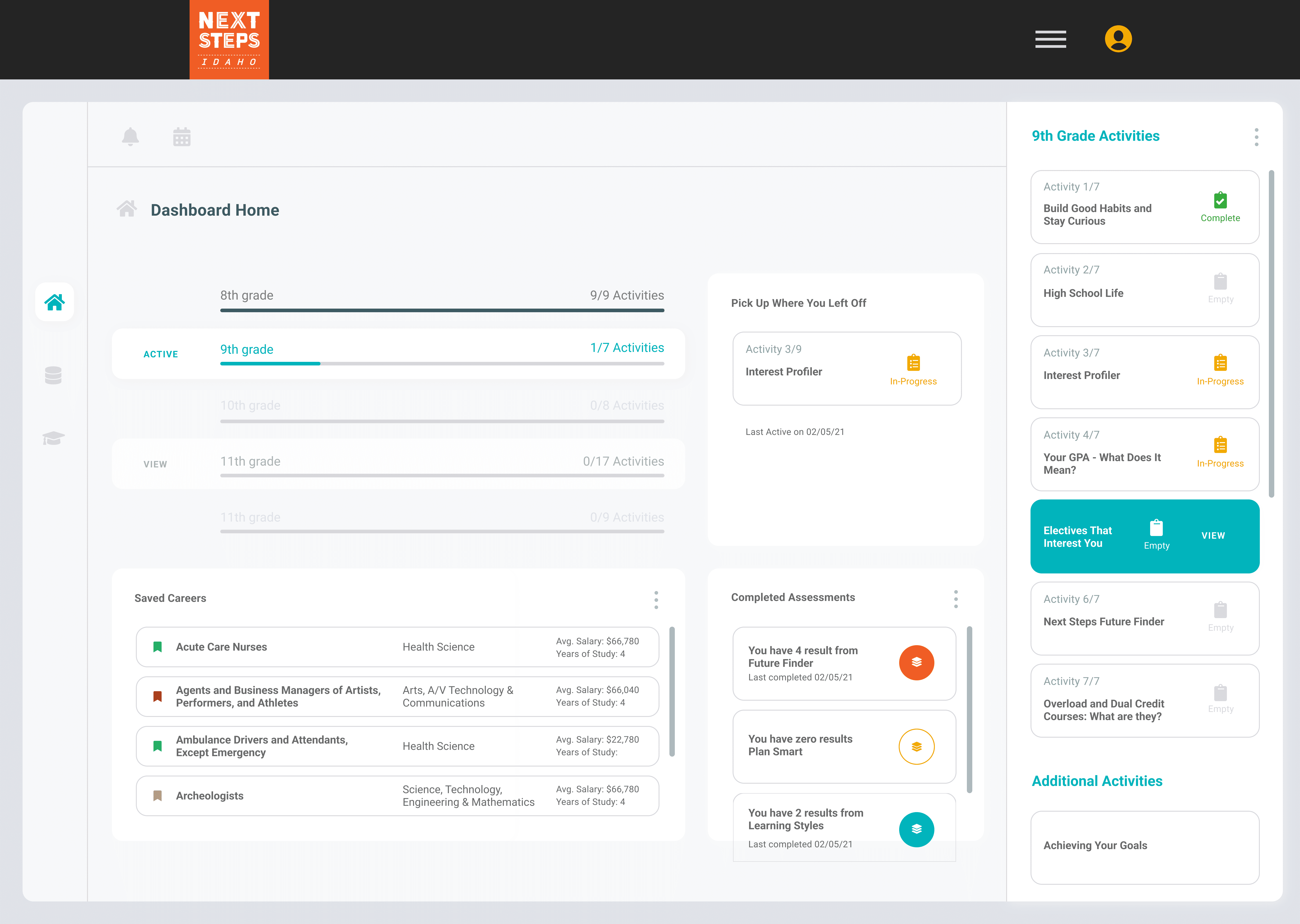 Next Steps Idaho needed to redesign their dashboard to improve clarity and create a visually engaging experience at the beginning of the 2024 school year!