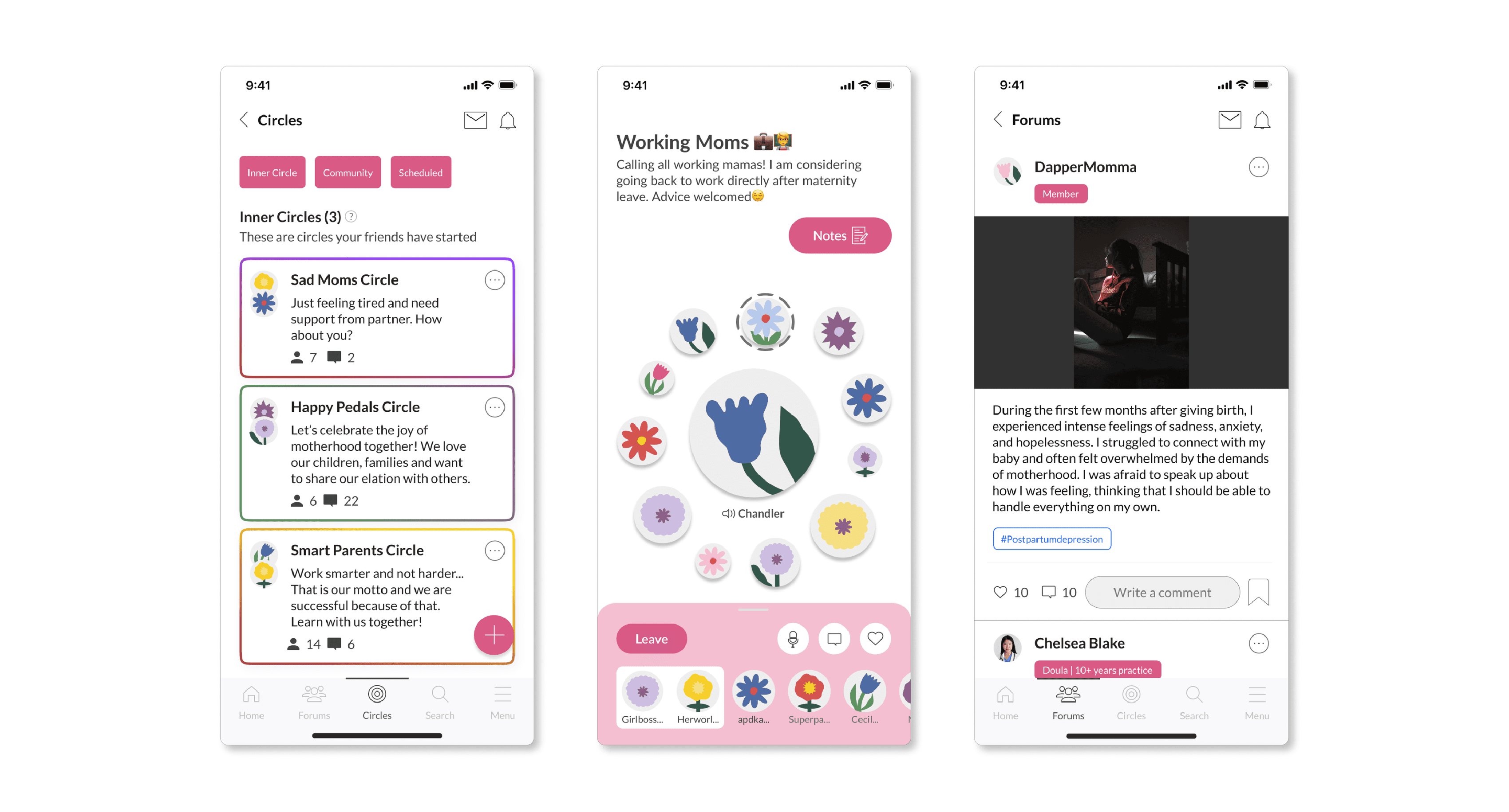 With limited time, my team and I designed an MVP where mothers could safely ask questions and share resources with each other and care providers, anonymously.